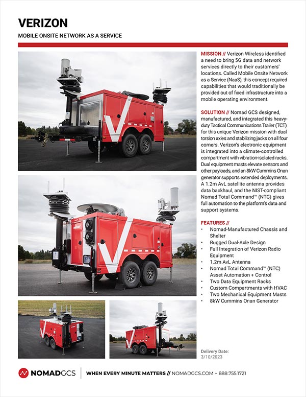 Mobile platforms must strengthen every aspect of Telco operations, with seamless connection to core networks enabling smarter, faster action. Nomad’s solutions are purpose-built for mission requirements and engineered to fit exact operational needs. From inspection vehicles to temporary or emergency service platforms, Nomad ensures you stay connected when it matters most.